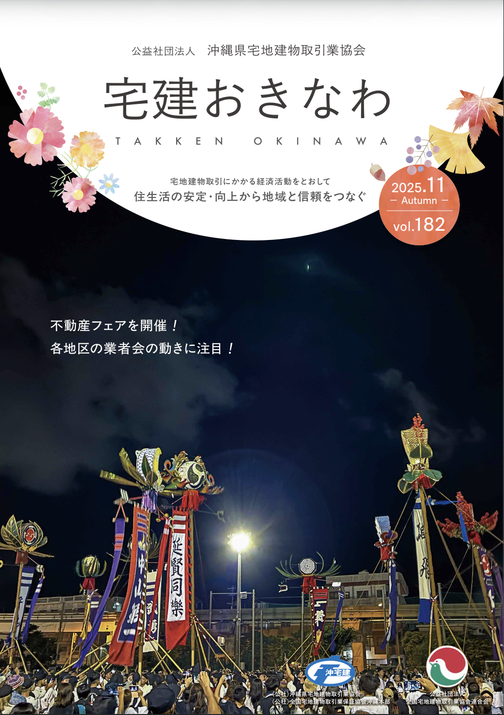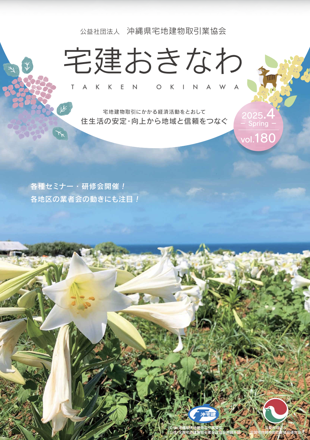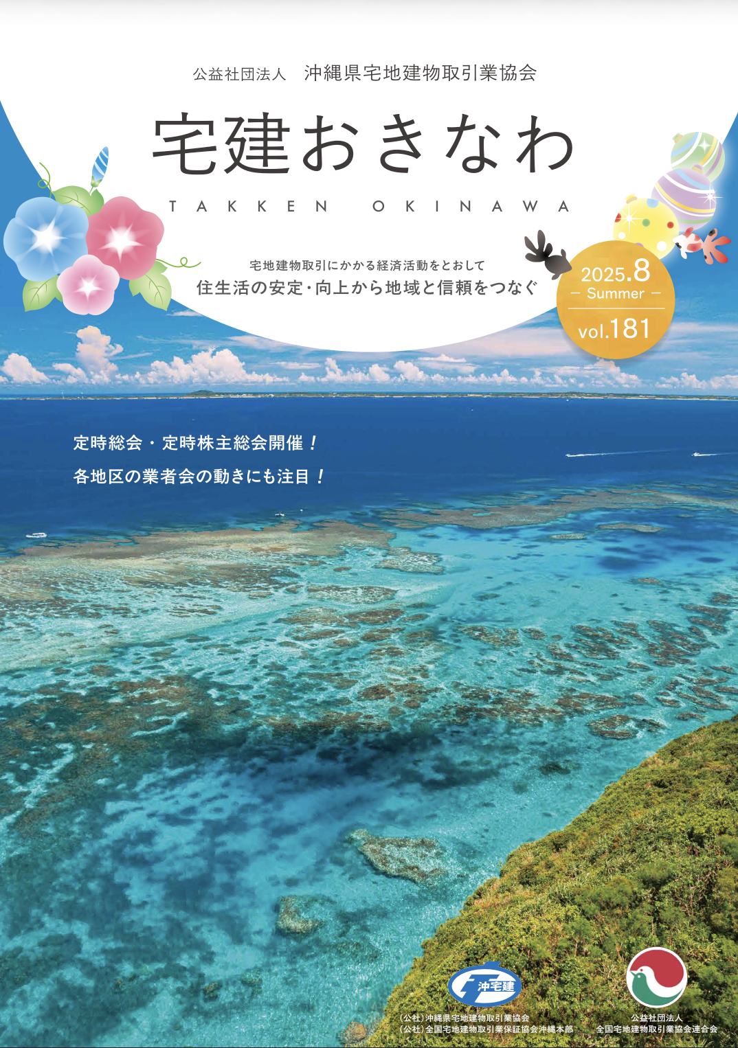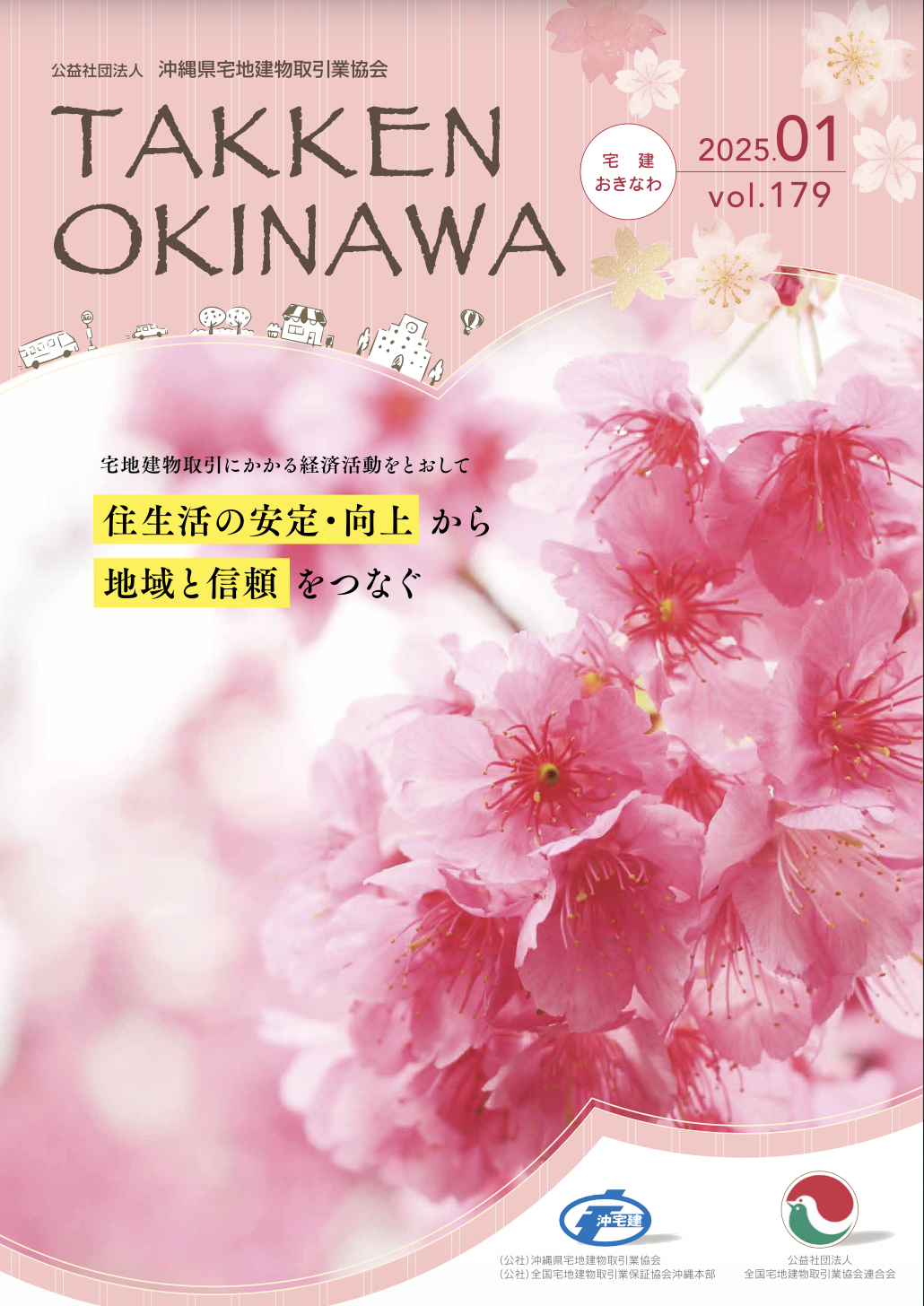 広報誌 宅建おきなわは(公社)沖縄県宅地建物取引業協会が発行している広報誌で、年4回、各1,500部発行しており、協会会員の他、行政機関や関係団体へ発送しています。